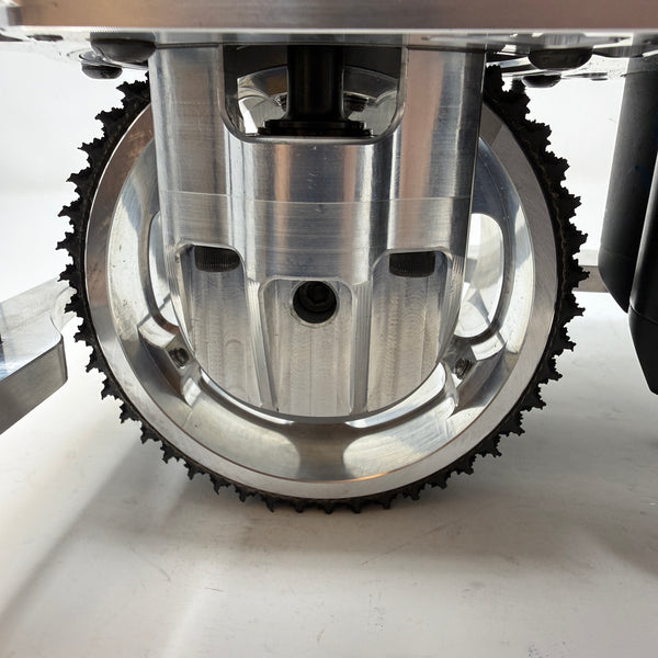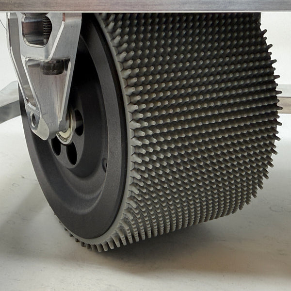- Machined billet wheel with neoprene tread and molded wheel with molded spike grip tread options (Colson wheel option planned).