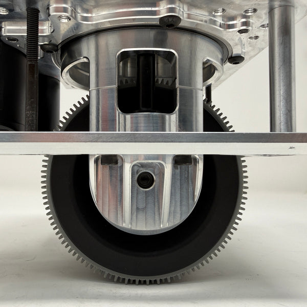 For drivetrains utilizing the MK5 line of swerve modules, this kit lifts the swerve module and robot chassis 1" by lowering the drive wheel. It increases ground clearance to traverse uneven terrain, and more readily enables intaking game pieces and deploying mechanisms under the robot.