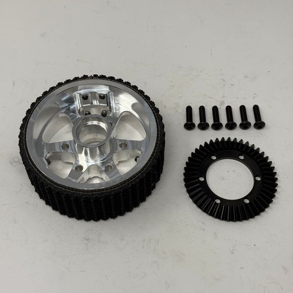 - 0.55 pounds (wheel with tread attached + six screws for attaching the bevel gear)